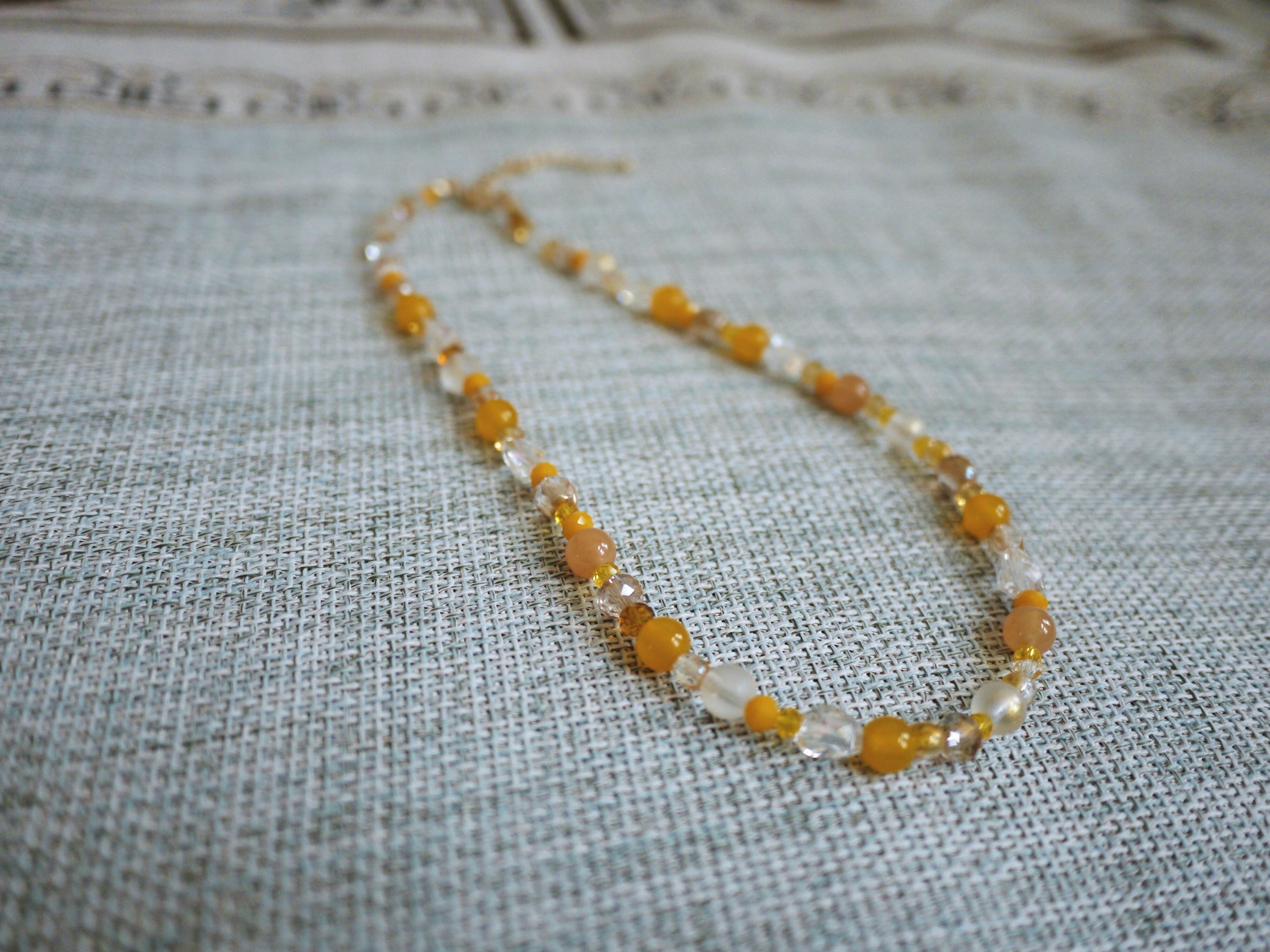 オレンジカラーをベースとした、ジューシーで透明感溢れるネックレスです。